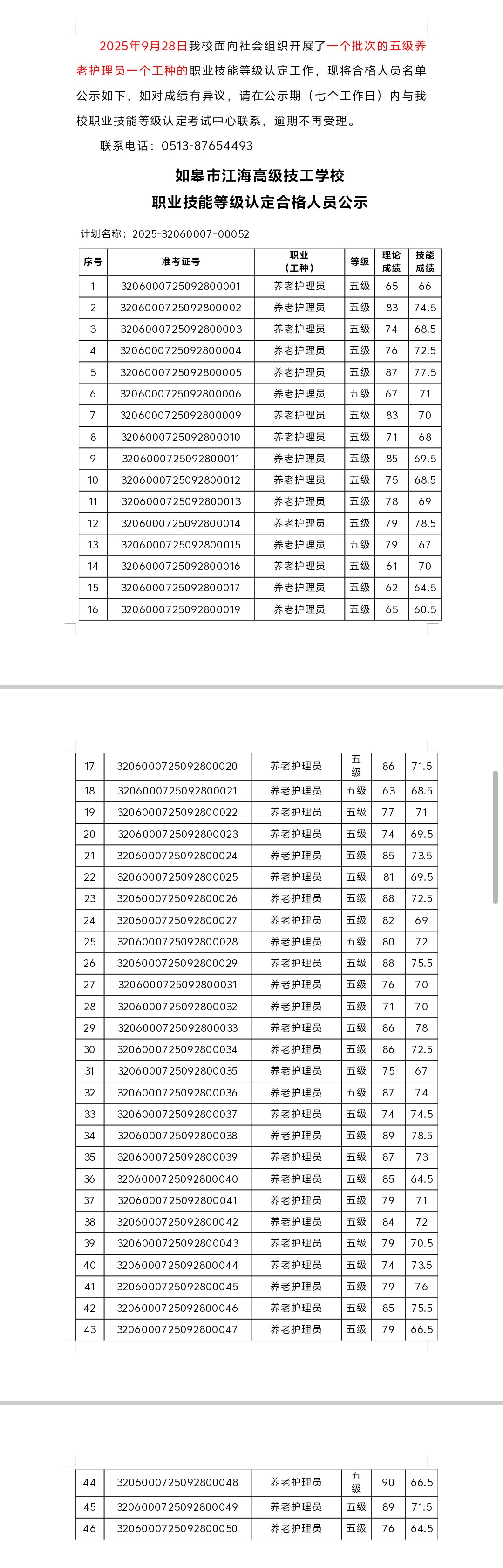 2025-32060007-00050批次職業(yè)技能等級認(rèn)定合格人員公示
