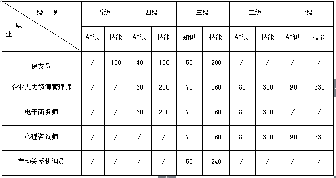 ①保安員、②企業(yè)人力資源管理師、③電子商務(wù)師、④心理咨詢師、